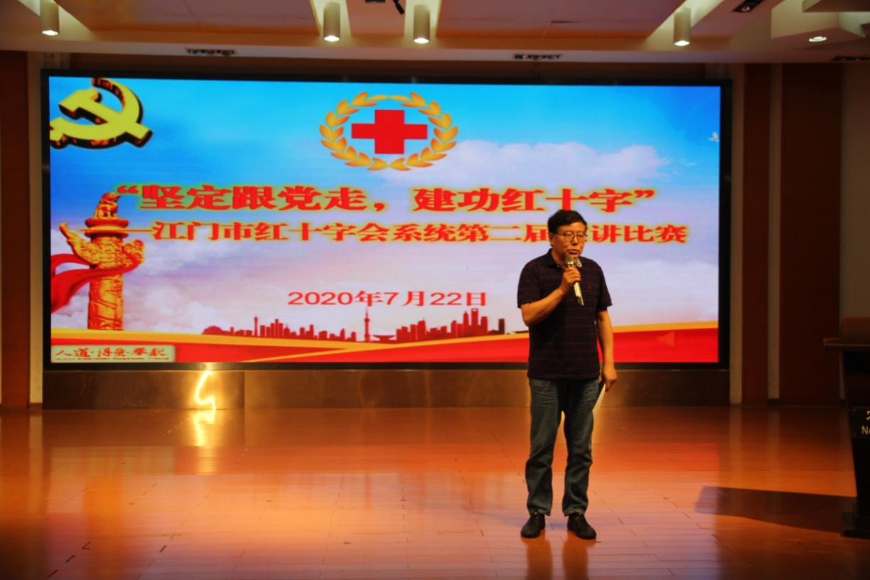 比赛活动现场精彩纷呈、感人至深。来自十四个单位的代表紧紧围绕“坚定跟党走,建功红十字”这一主题,向大家讲述了红十字志愿者感人故事、抗击新冠肺炎疫情的故事和自身在红十字会工作的经历和感受等等,并利用图片、视频等方式还原故事及活动场景增添了现场感染力,引起大家的共鸣。经过紧张角逐,市疾控中心代表黄进宝获得一等奖;市中心医院、新会区人民医院、五邑中医院、蓬江区红十字会、广东江门中医药职业学院代表分获二等奖;江门市第三人民医院、江门市人民医院、江海区红十字会、江门市妇幼保健院、鹤山市职业技术学校、恩平市红十字会、台山市红十字会、开平市中医院代表分获三等奖;五邑中医院和新会区红十字会获优秀组织奖。