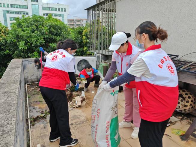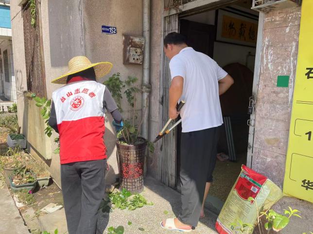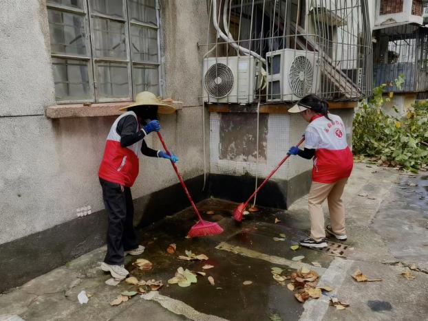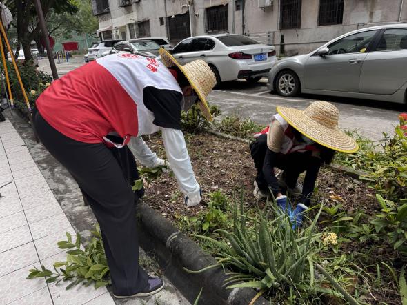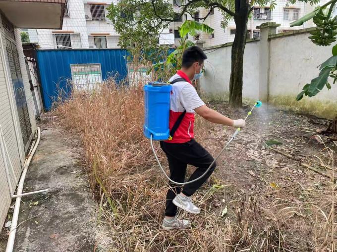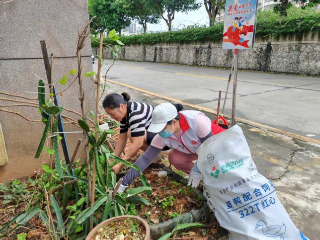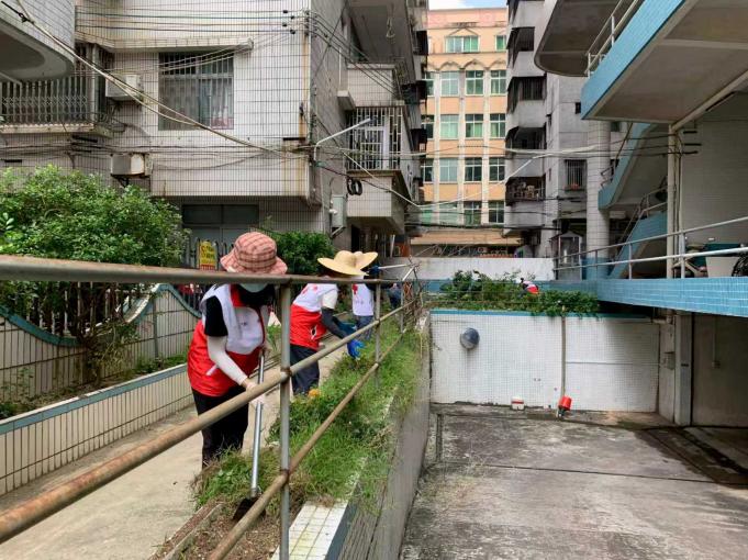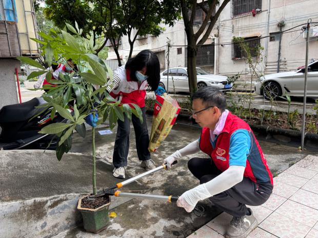 党员干部开展绿植、积水、杂物清理及消杀工作