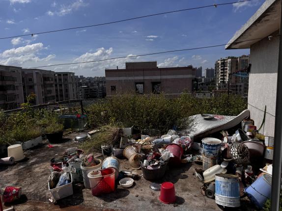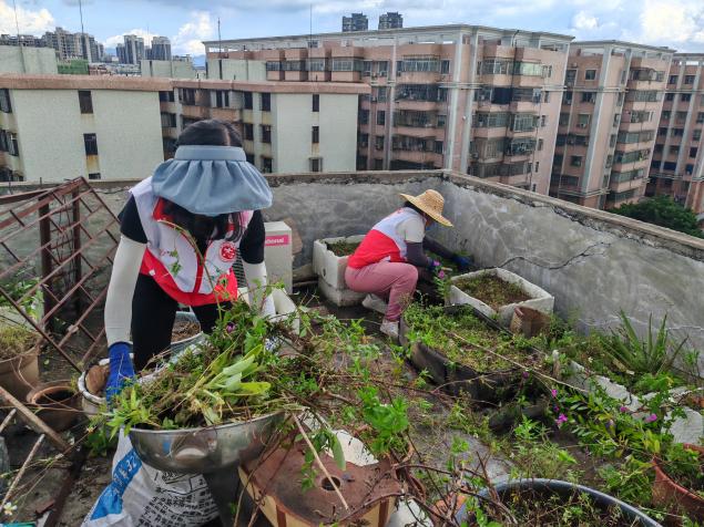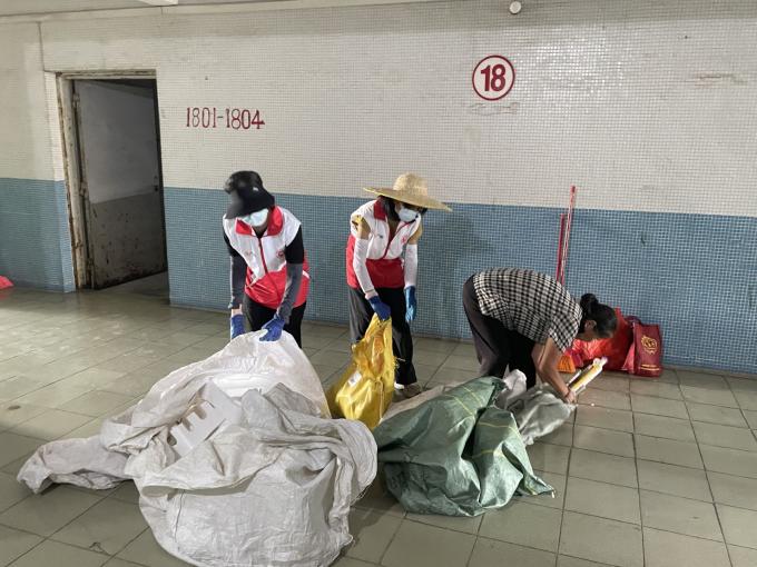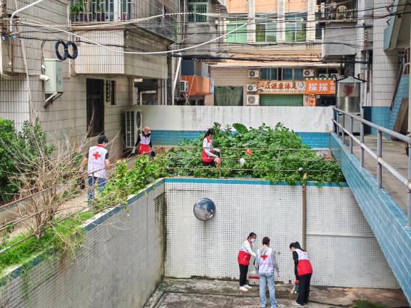 党员干部冲锋在前,带动全体工作人员深入天台、房前屋后、地下车库、闲置地块等重点区域,进行全面排查与清理。大家手持扫帚、剪刀、铁锹等工具,分工协作、相互配合:对天台的废旧家具、纸箱、荒废绿植等杂物逐一搬运清运;对楼道内杂物进行统一规整,并耐心劝导居民合理摆放个人物品;对绿化带内的杂草、落叶进行彻底清扫,对排水沟和积水点及时排水清淤,从源头切断蚊虫繁殖链条。行动共出动30人次,清理公共区域、楼道、天台垃圾杂物34处,约12吨。