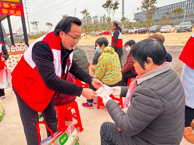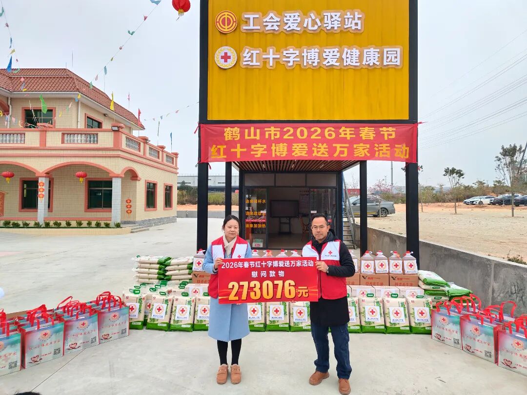 寒冬送暖,博爱同行。在2026年新春佳节即将到来之际,为深入贯彻落实党委政府关心关爱困难群众和弱势群体的工作部署,弘扬“人道、博爱、奉献”精神,1月23日,鹤山市红十字会在龙口镇青文村举行2026年春节红十字“博爱送万家”活动,将党和政府的关怀、社会各界的爱心精准送达困难群众手中。