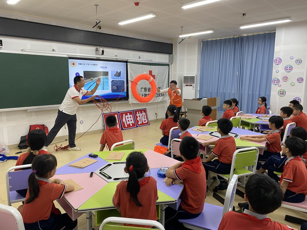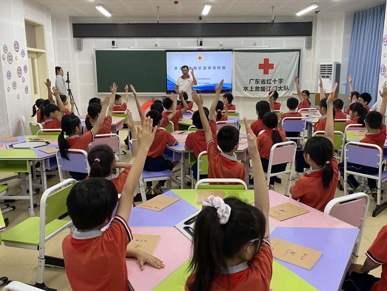 为进一步加强校园安全教育,保障学生生命安全,帮助广大学生增强防溺水安全意识,掌握防溺水知识技能,提高自救互救能力,3月27日下午,市红十字会、蓬江区红十字会、红心安全科普服务中心联合广东省红十字水上救援江门大队,走进蓬江区丰泰小学,开展了一堂生动的防溺水安全教育活动,呼吁同学们时刻敲响警钟,珍爱生命,严防溺水。