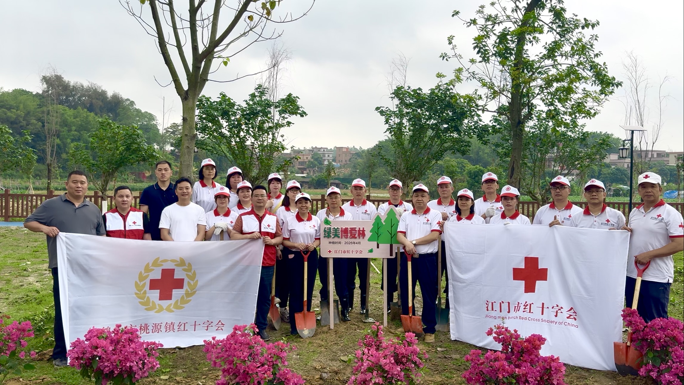 春暖花开,万物生长。为深入学习贯彻习近平生态文明思想,贯彻落实省委绿美生态建设部署,积极响应市委“绿美江门”生态建设号召,发动广大红十字基层组织、理事、会员、志愿者热心参与“绿美江门”认捐认种认养公益活动。4月2日上午,江门市红十字会机关党支部组织全体党员及入党积极分子,红十字会理事、会员、志愿者代表,联合鹤山市桃源镇红十字会在鹤山市桃源镇蟠龙河畔开展“绿美博爱林”主题党日活动,为“绿美江门”生态建设贡献红十字力量。