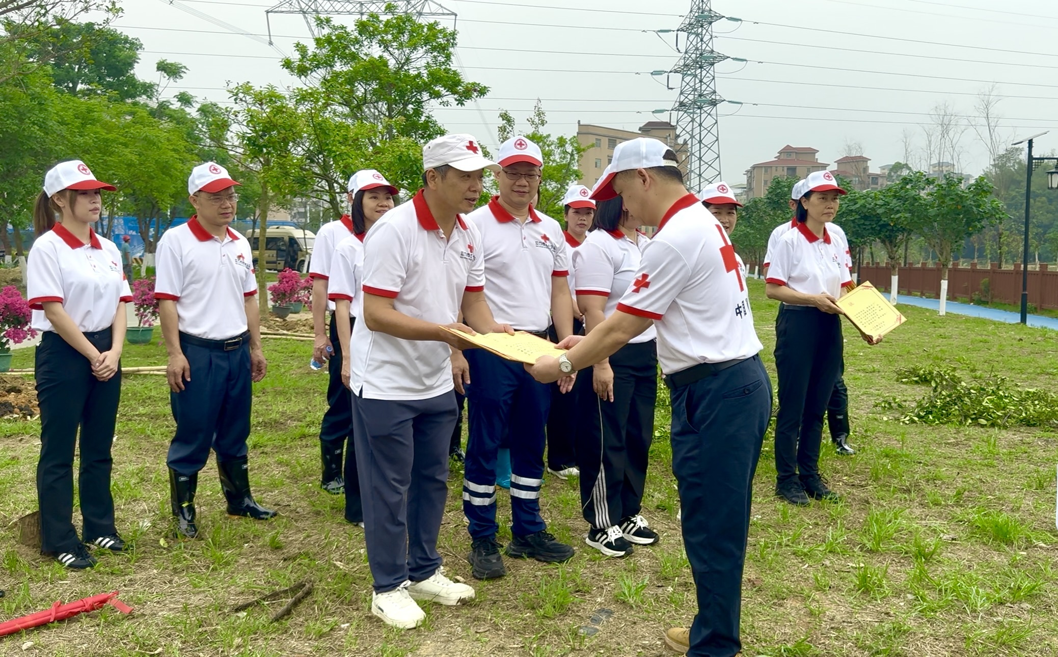 植树活动当天,市红十字会党组书记、常务副会长黄集文为积极响应“绿美博爱林”认捐认种倡议的代表颁发感谢状,感谢红十字理事、会员、志愿者们对建设“绿美江门”的爱心支持。