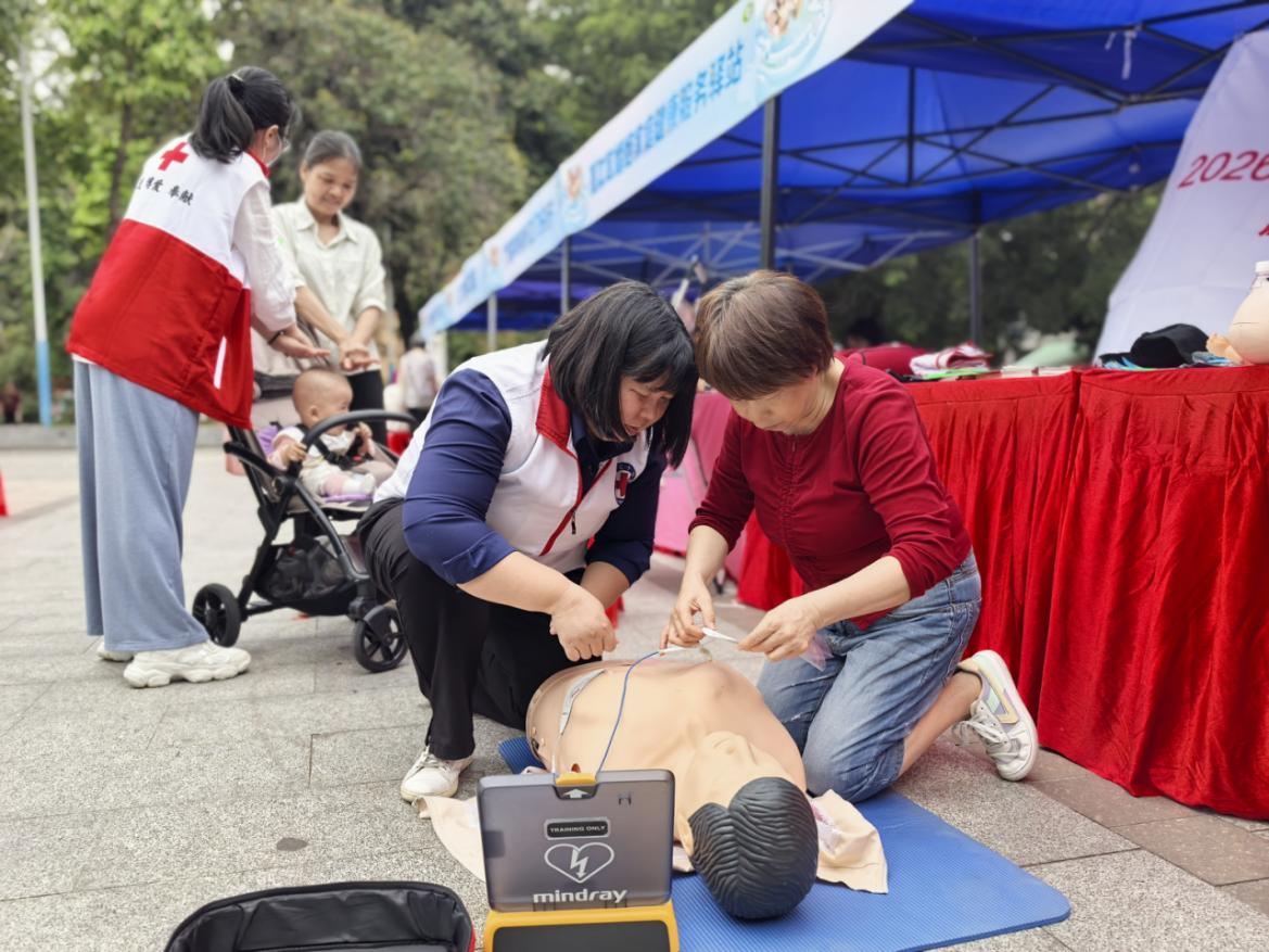 活动现场,红十字志愿者化身“宣讲员”与“教练员”,通过发放宣传资料、面对面讲解等方式,向群众普及应急救护核心技能。针对心肺复苏(CPR)及AED使用方法,志愿者们进行了“沉浸式”实操演示,手把手指导群众掌握按压位置、频率及除颤要点,帮助大家在关键时刻敢救、会救。