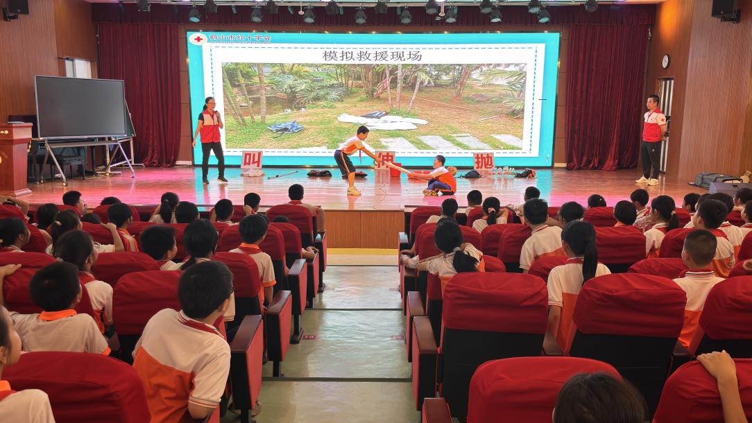 4月16日上午,鹤山市红十字会走进沙坪街道第一小学(峻廷湾校区),成功举办鹤山市防溺水安全知识宣讲进校园“百千万行动”首场活动。宣讲团队结合真实案例,通过知识讲解、技能演示、互动实操等方式,让学生沉浸式掌握自救互救技能。