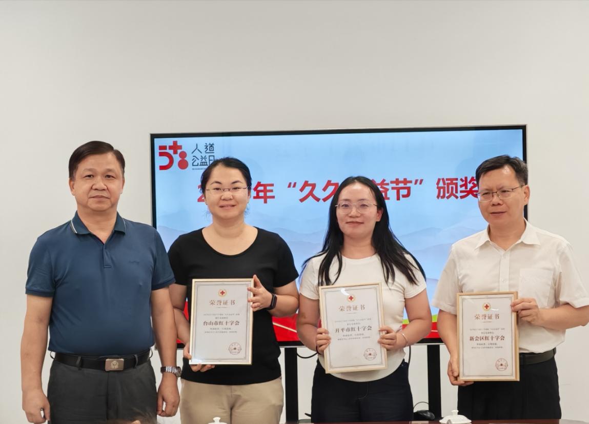培训会上,对我市2025年“久久公益日”筹款金额前三名的县(市、区)红十字会进行表彰,分别是:台山市红十字会、新会区红十字会、开平市红十字会;各参会代表就去年筹资和项目执行情况、今年众筹项目组织筹备情况作交流讨论。