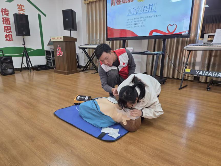 2月2日下午,恩平市小岛社区培训室内暖意融融——由恩平市红十字会、团市委共同主办的“青春赋能‘救’有力量”2026年恩平市大中学生寒假社会实践暨应急救护公益培训活动在此举行。一群朝气蓬勃的大中学生齐聚一堂,沉浸于急救知识课堂,解锁“守护生命”新技能,为这个寒假增添了一份特殊而重要的意义。