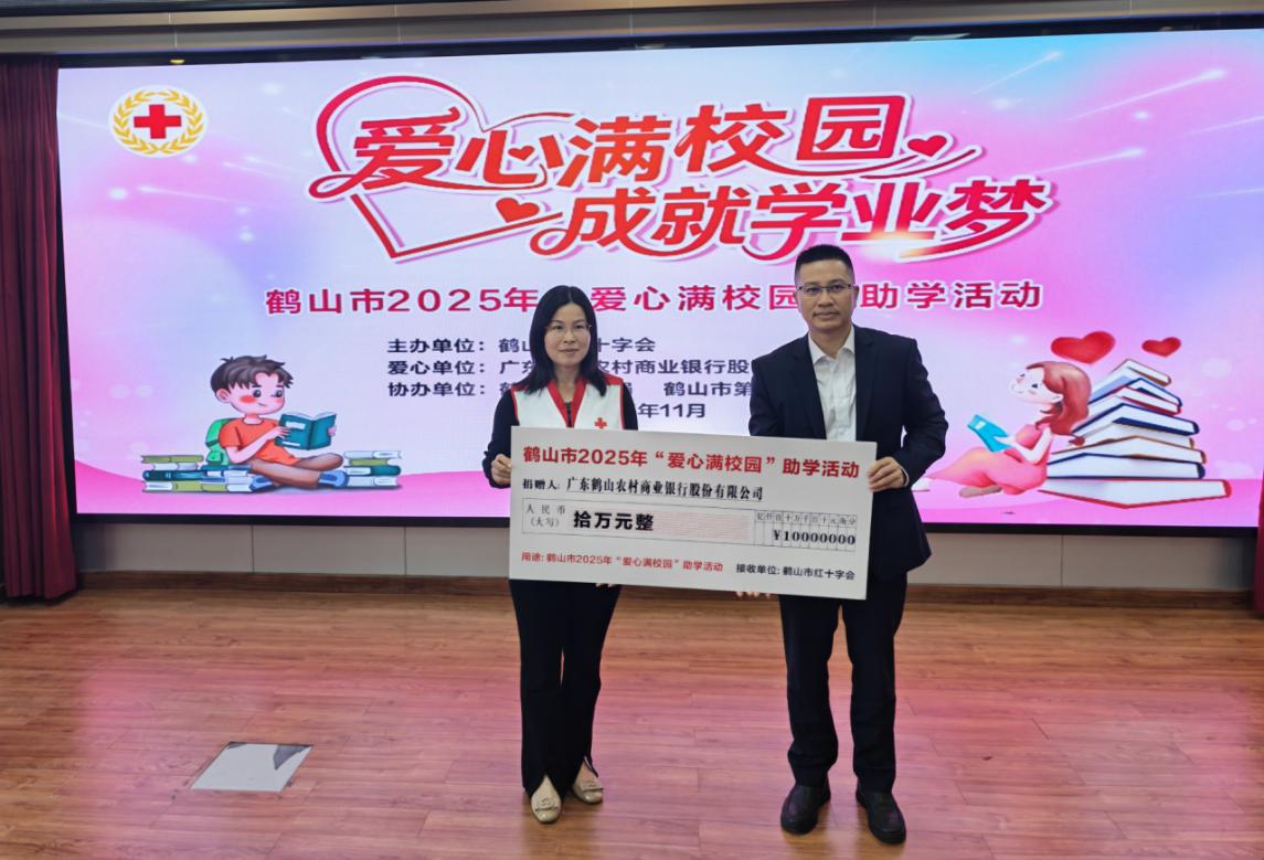 鹤山农商银行向鹤山市红十字会移交2025年助学金支票,延续了连续六年的爱心捐助传统,用实际行动践行企业社会责任。