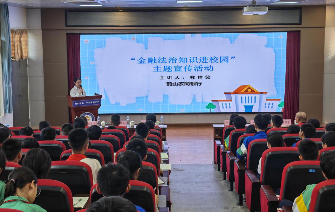 活动最后,鹤山农商银行金融讲师开展金融法治知识讲座,通过案例讲解、有奖问答等形式,向师生普及电信网络诈骗防范知识,助力筑牢校园安全防线。