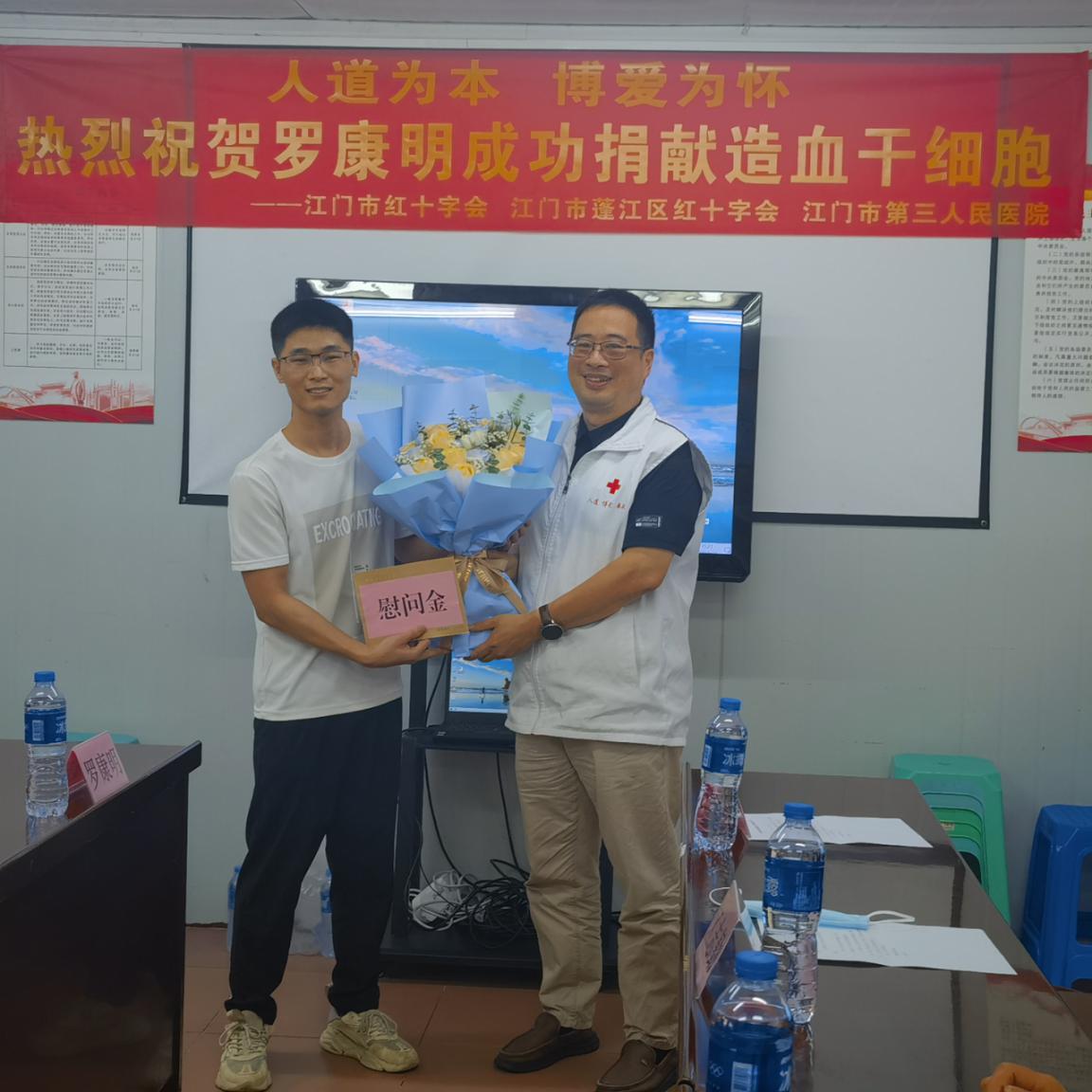 既可以帮助别人,又可以升华自己,何乐而不为。”6月15日,罗康明在广州成功捐献造血干细胞后回到江门,江门市红十字会、蓬江区红十字会在江门市第三人民医院为他举办慰问会。罗康明是蓬江区第7例、江门第33例、蓬江区第4例造血干细胞捐献者。