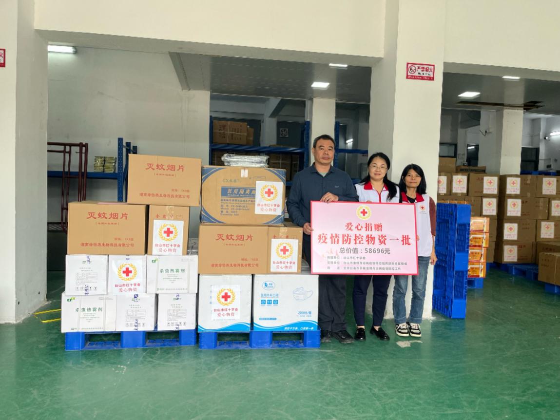 10月22日,台山市红十字会积极动员社会力量,在江门市红十字会的大力支持下,利用捐赠资金58696元,紧急采购了防控物资一批,全力以赴助力全市开展虫媒防控和爱国卫生运动工作。
