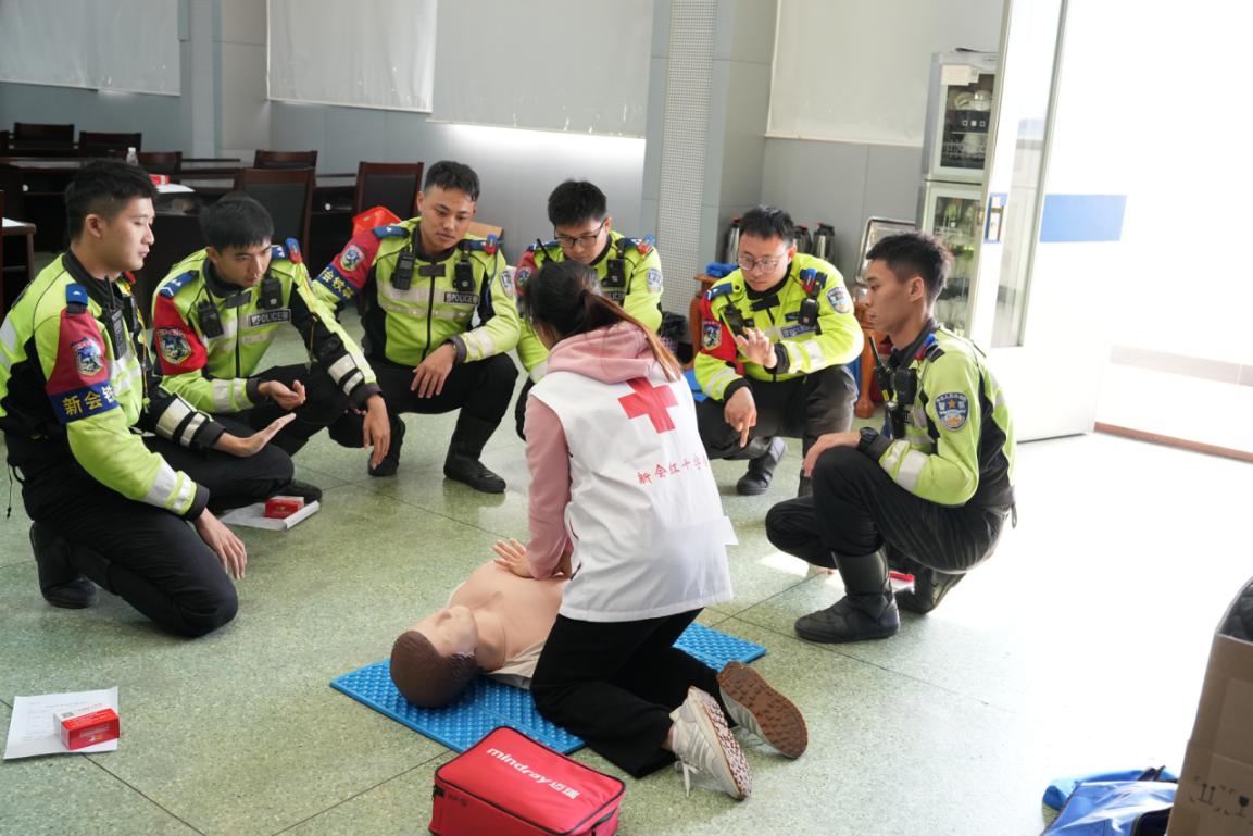 随着道路交通状况日益复杂,现场实施紧急救援的需求不断显现。交警往往是最早抵达事故现场的公务人员,已成为连接院前急救与交通安全的关键“第一响应人”。在意外发生的“黄金四分钟”内进行有效干预,对挽救生命至关重要。本次仪式同步启动了针对一线警力的急救技能专项培训。培训围绕心肺复苏术(CPR)、AED规范使用、创伤救护等核心内容展开,采取理论讲授、模拟实操与技能考核相结合的模式,确保每一位参训人员都能扎实掌握应急救护的基本技能,为今后在执行任务中高效、专业地开展初步医疗救助奠定坚实基础。