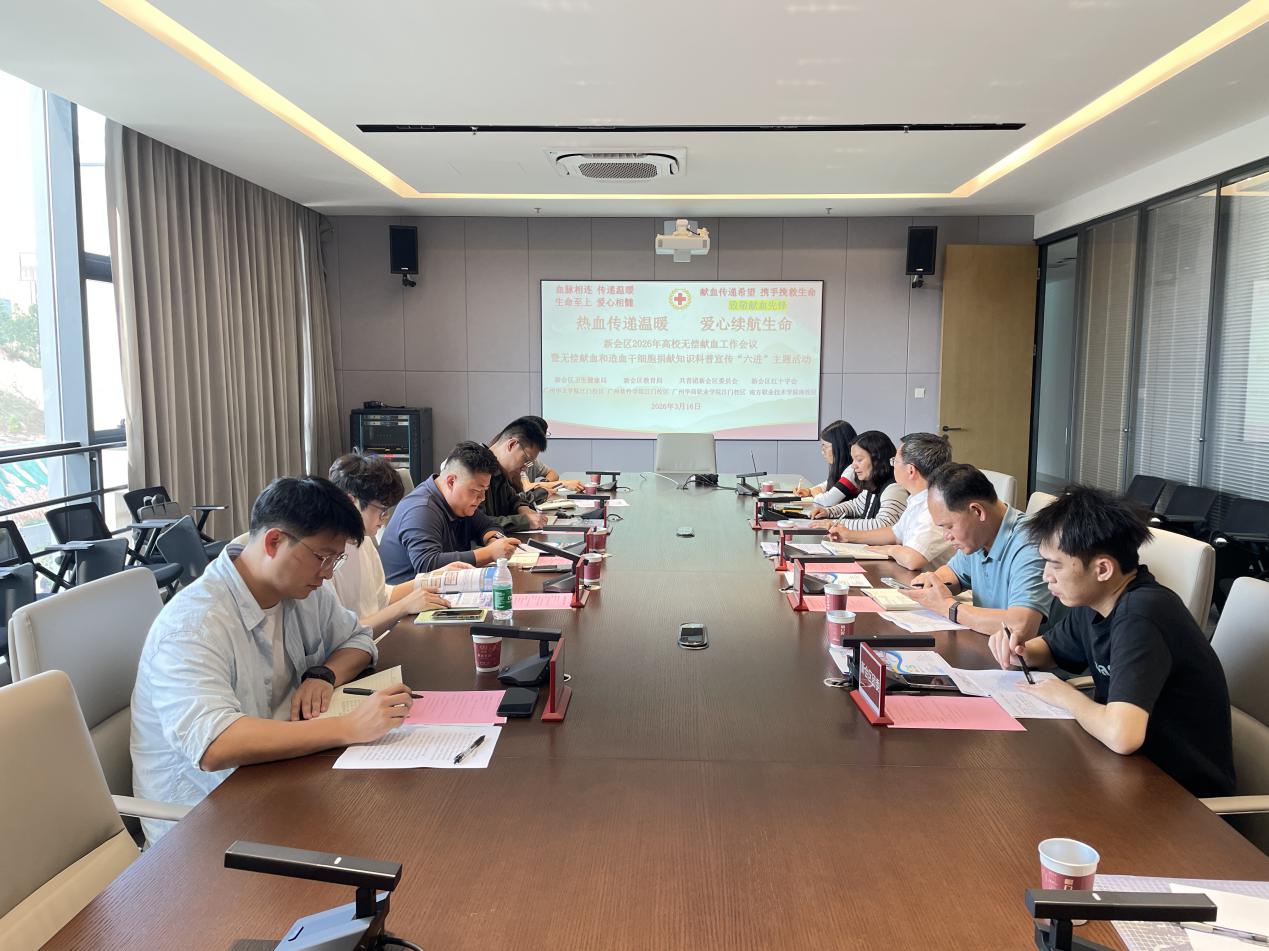 为深入贯彻落实“人民至上、生命至上”理念,进一步推动新会区高校无偿献血事业高质量发展,3月16日,新会区2026年高校无偿献血工作会议暨无偿献血与造血干细胞捐献知识科普“六进”和无偿献血攻坚行动主题宣传活动在广州软件学院江门校区召开。本次会议以“热血传递温暖,爱心续航生命”为主题,全面总结过往经验,科学部署2026年工作。新会区教育局、区卫生健康局、团区委、区红十字会有关负责同志,以及全区各高校代表参加会议。