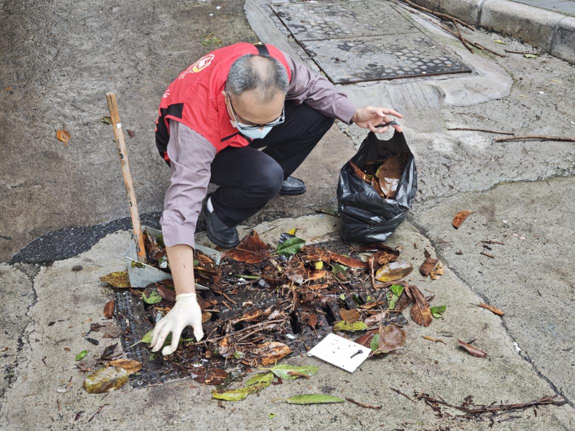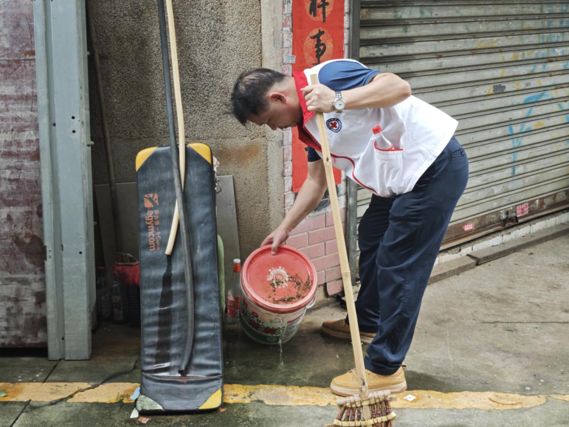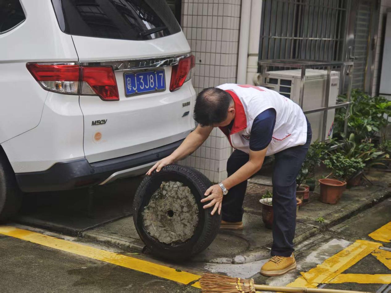 9月25日“桦加沙”台风过后,在良化西社区,党员干部根据社区的需求和安排,深入小区街道、背街小巷、居民小区、城市公园等蚊虫孳生重点区域,与环卫工人、群众居民一道开展“地毯式” 环境清理。大家手持扫帚、垃圾铲等工具,认真清扫垃圾杂物、疏通排水管道、清理积水隐患、翻倒盆罐、轮胎等清除积水,从源头上减少蚊虫滋生环境。