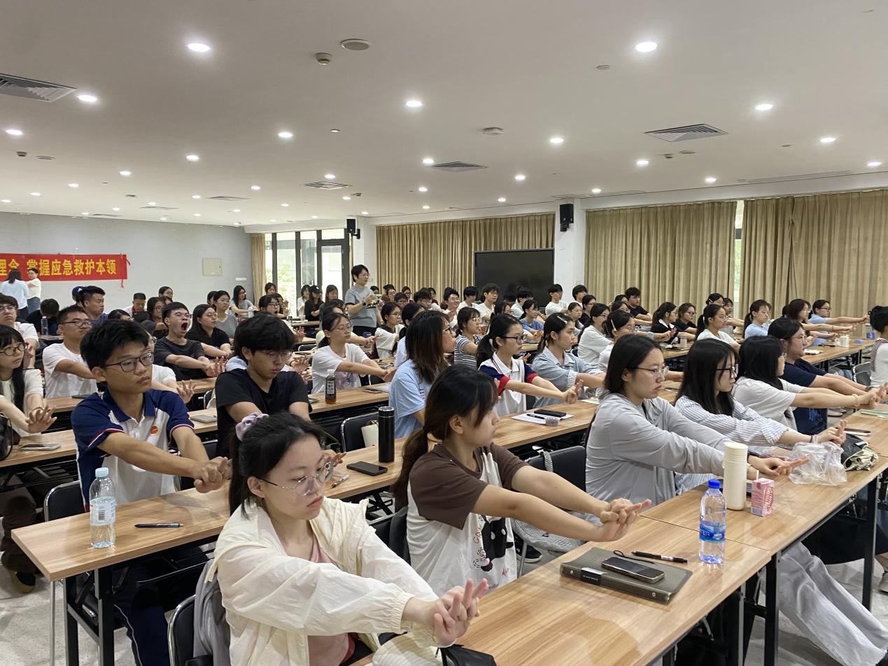 本次培训由中国红十字应急救护师资源志英主讲,培训分为急救理论知识和实践操作两个环节。培训中,源老师围绕急救知识重点内容,通过图文并茂的PPT及深入浅出的语言进行授课,强调了急救的“黄金四分钟”概念,让学生们深刻认识到在紧急情况下迅速采取正确急救措施的重要性。