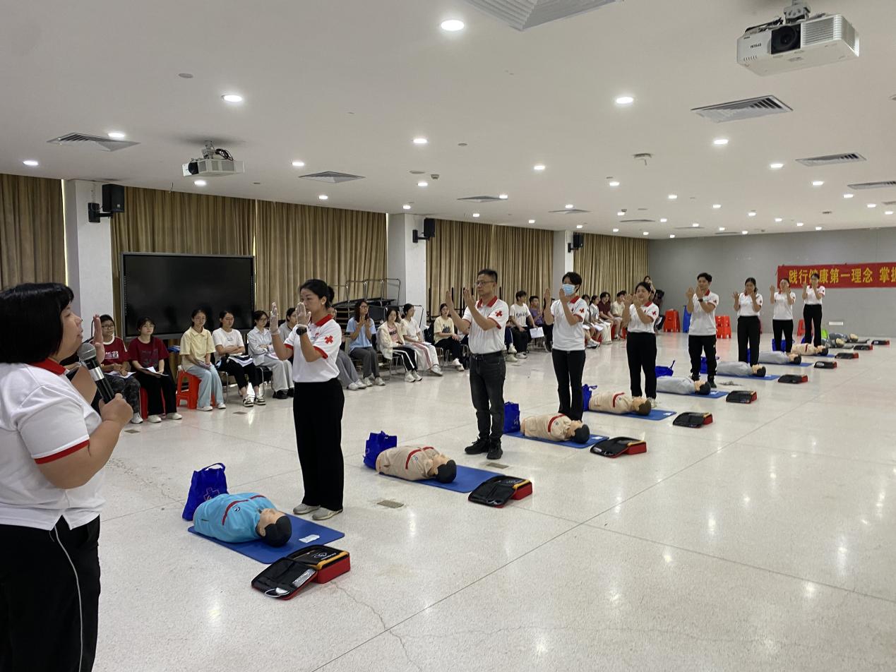 本次培训为期一天,旨在普及急救知识,使在校学生掌握基本的急救技能,能够在紧急情况下为伤者提供及时、有效的初步救护。培训内容丰富实用,涵盖了心肺复苏(CPR)、自动体外除颤器(AED)的使用、创伤急救(止血、包扎、固定、搬运)以及常见急症(如气道异物梗阻等)的应急处理等多个方面。