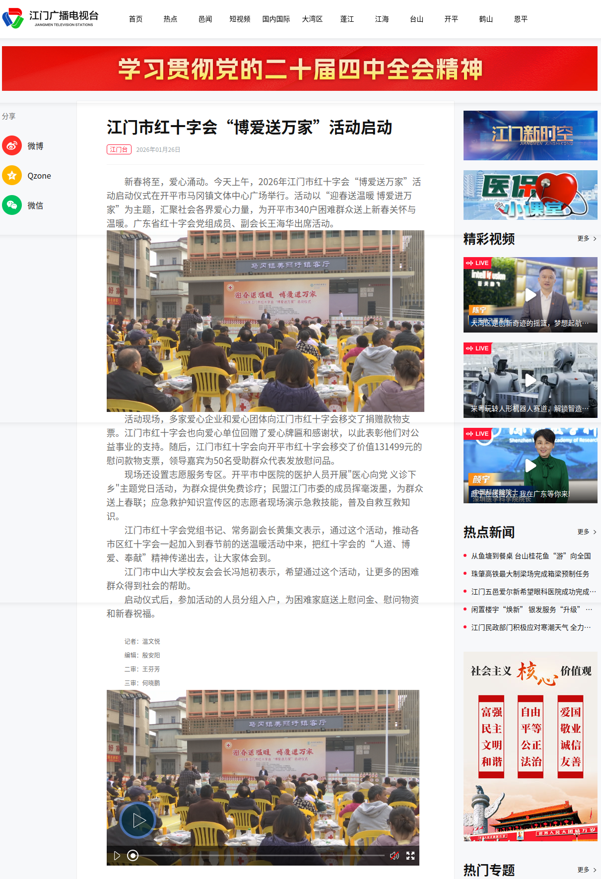 【江门广播电视台】-江门市红十字会“博爱送万家”活动启动