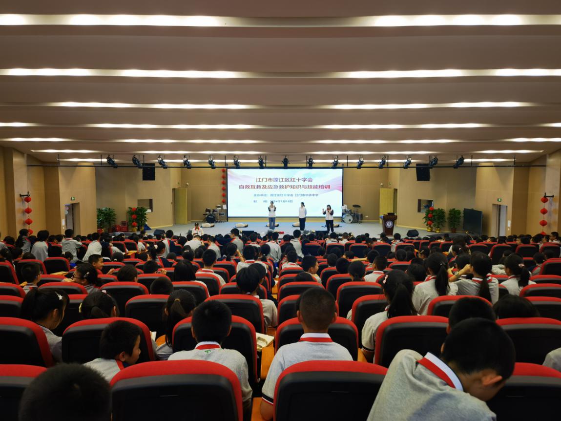 寒假即将到来,为推动蓬江区红十字青少年工作,丰富红十字青少年活动内涵和形式,确保学生假期生命安全。1月18日下午,蓬江区红十字会联合江门市华侨中学开展自救互救及应急救护知识与技能大讲堂活动,蓬江区红十字会副会长区志勤参加活动,该校全校620多名师生一起学习急救知识与技能。