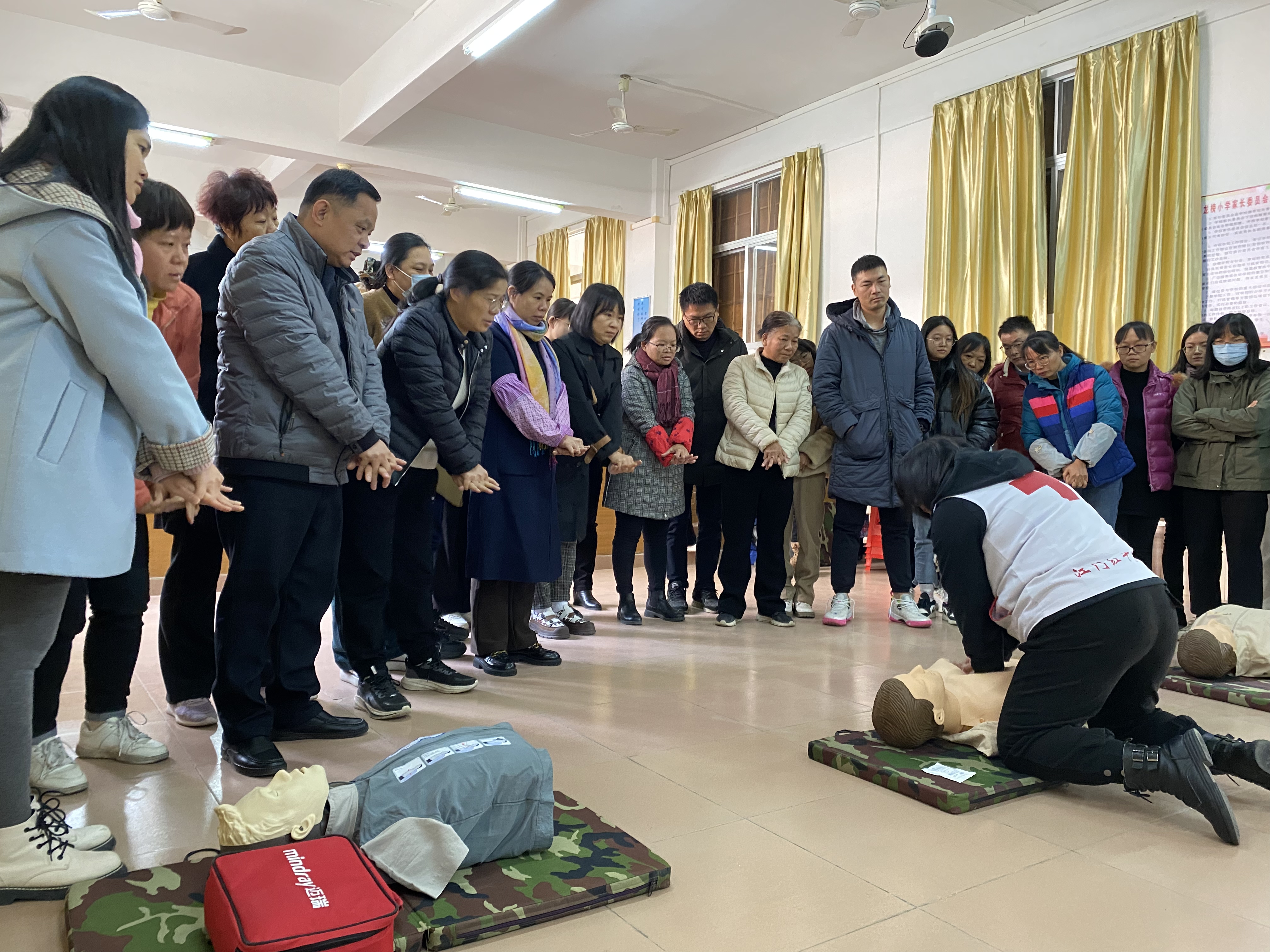 近日,为提升校园应对突发事件和意外伤害事故的应急救援和自救互救能力,保障学校教师、学生的生命健康安全,市红十字会、红心安全科普服务中心联合蓬江区红十字会、蓬江区教育局开展“红十字会应急救护进校园”培训活动,先后走进蓬江区美景小学、杜阮小学、楼山初级中学、贯溪小学等多所中、小学校,近三百名教师参加了培训学习。