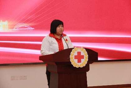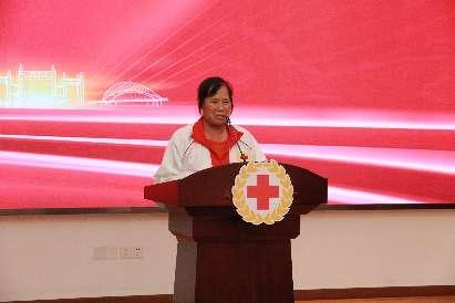 市红十字会备灾救灾中心主任王敏嘉为2023年度优秀红十字志愿者颁奖