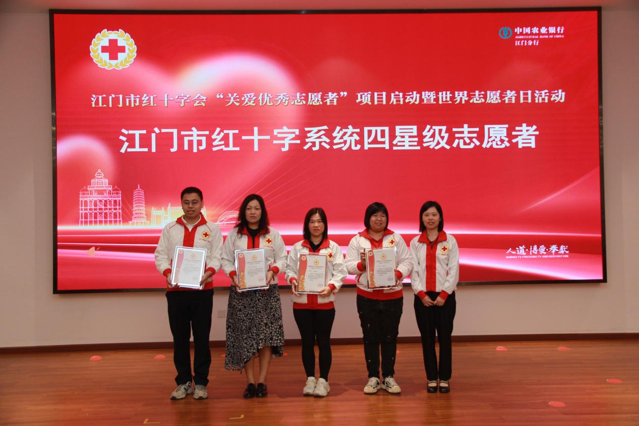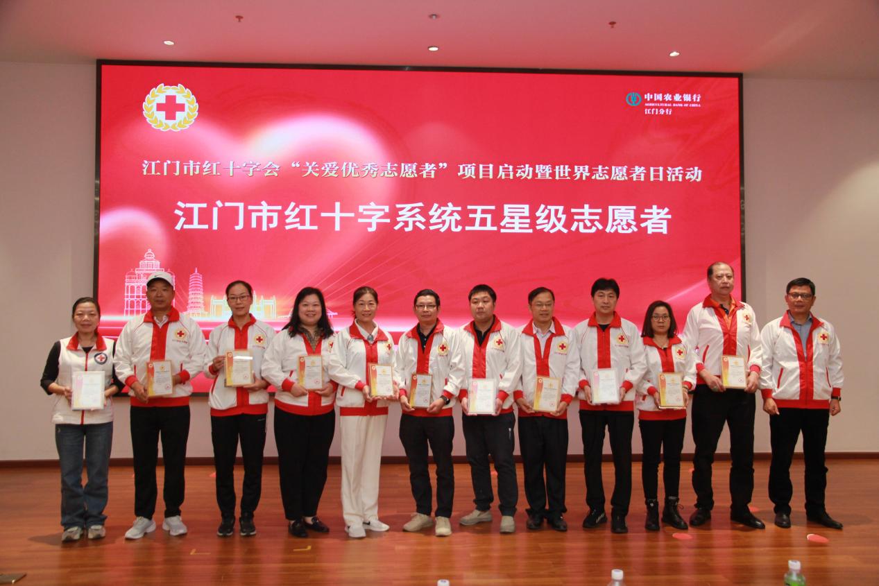 江门市红十字会、各县(市、区)红十字会负责人共同启动“关爱优秀志愿者项目”,该项目将造血干细胞成功捐献者、遗体器官捐献者直系亲属、红十字系统终生志愿者、四星级以上志愿者纳入每年“红十字博爱送万家”慰问对象。