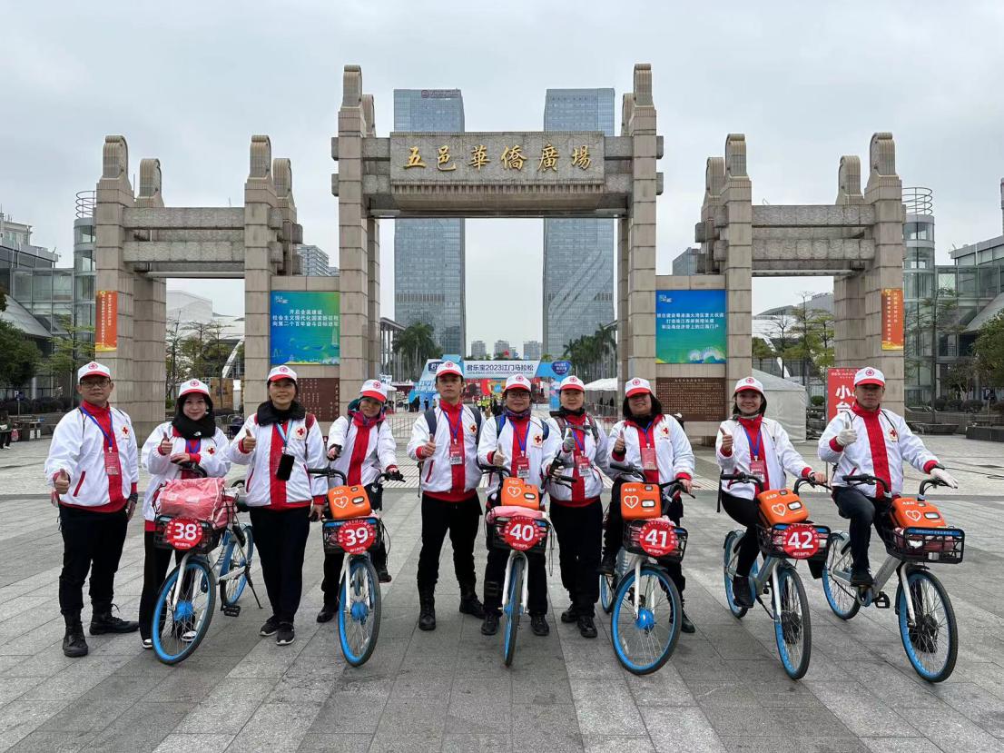 12月17日上午7时30分,2023江门马拉松赛鸣枪开跑!近两万名跑者从五邑华侨广场出发,畅享马拉松带来的欢乐和精彩。市红十字会积极参与2023江门马拉松骑行救护队和医疗志愿者培训保障任务,应急救护“救”在身边,守护陪伴参赛选手到最后一公里,为比赛圆满举行“保驾护航”。