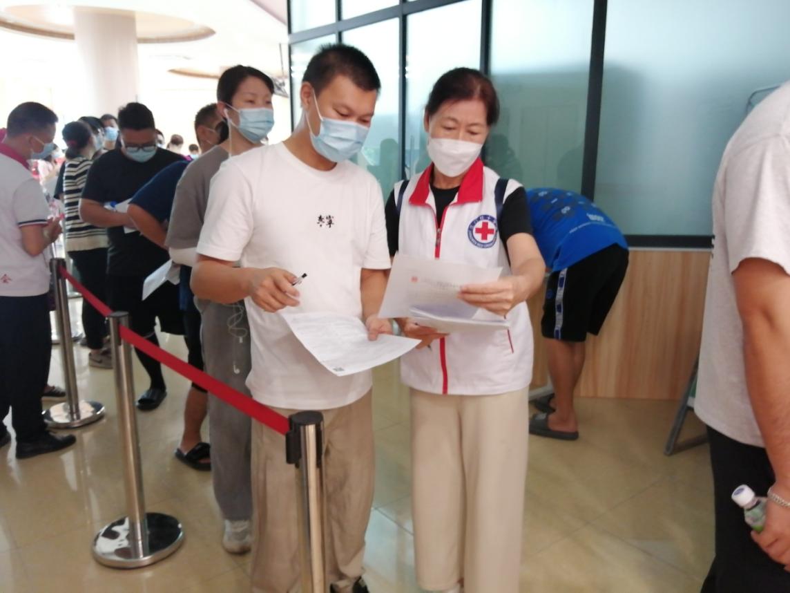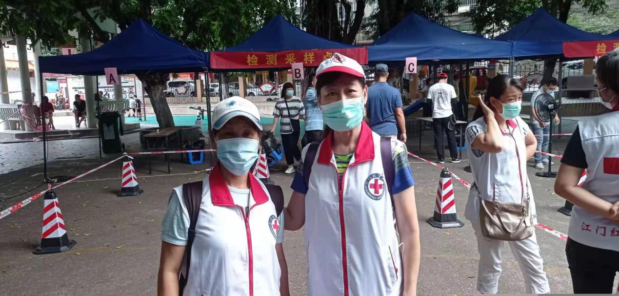2020-2022年疫情期间,曹志英先后多次到江门市蓬江区农林社区、幸福社区、银泉社区、良化西社区,杜阮高速口等地协助核酸检测,防疫防控志愿活动。和大家一起积极投身抗疫一线,上门发动群众、维护秩序、信息登记、采样指引,出色完成各项工作,展现红十字志愿者的责任和担当。