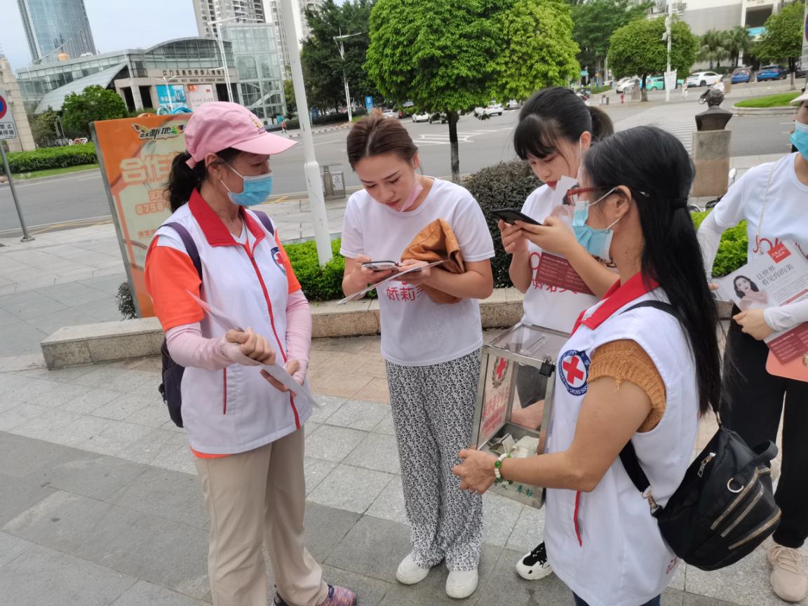 曹志英(右一)在江海发动造血干细胞宣传
