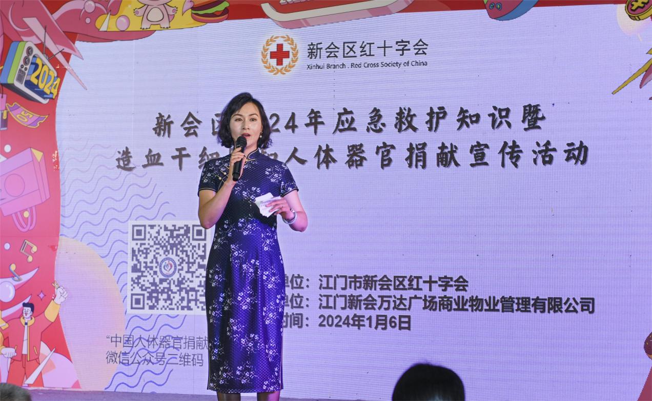 为进一步弘扬“人道、博爱、奉献”红十字精神,提高广大群众对无偿献血、造血干细胞捐献、遗体和人体器官捐献工作及红十字应急救护知识的知晓率,1月6日下午,新会区红十字会联合江门市中心血站、新会区卫生健康局在新会万达广场举办“新会区2024年应急救护知识暨无偿献血、造血干细胞和人体器官捐献宣传活动”。