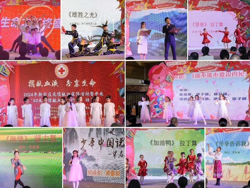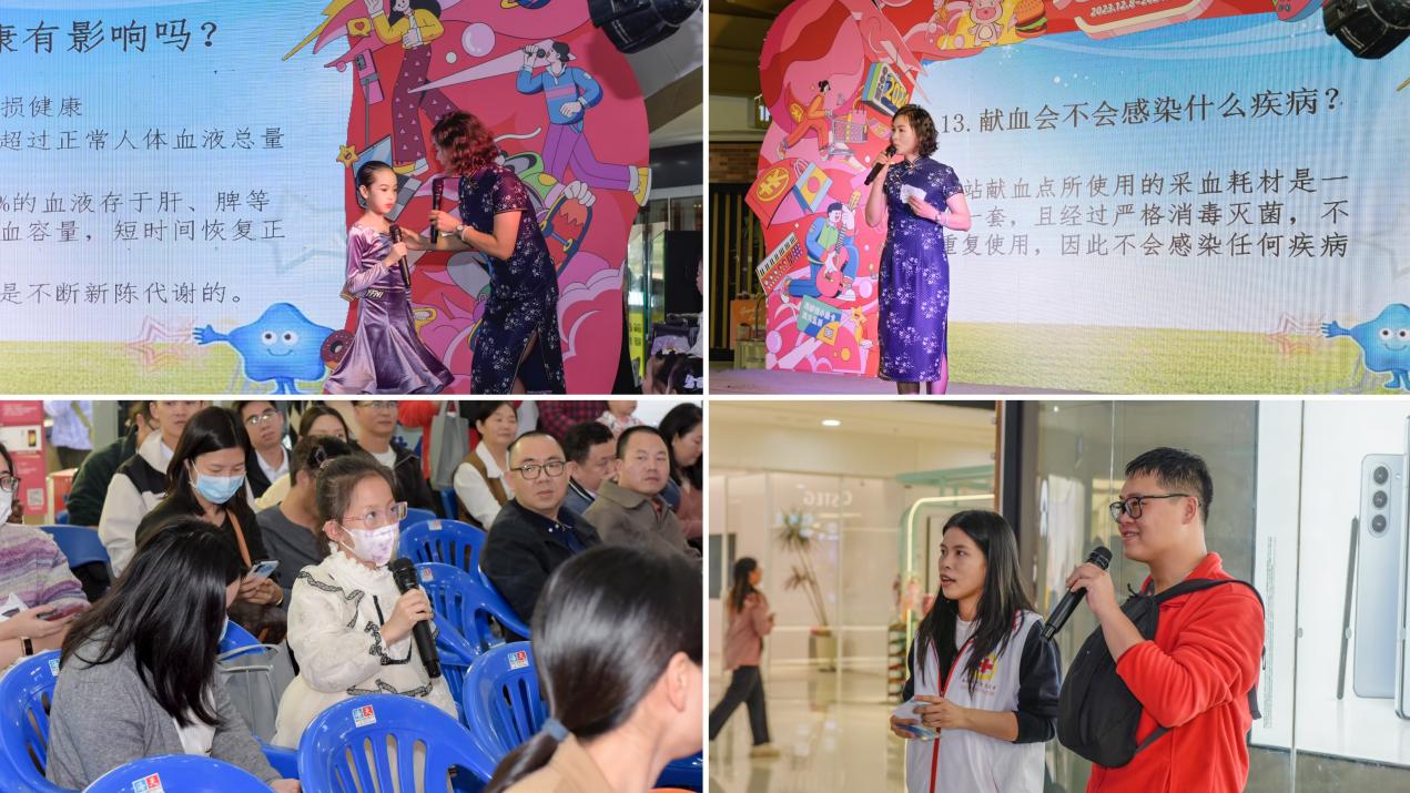 在活动现场,不仅邀请了造血干细胞志愿捐献者谭锡钧先生作捐献造血干细胞的志愿分享,谭锡钧先生于2023年11月29日完成了造血干细胞的采集捐献,此次分享讲述了他经历整个捐献流程的亲身体会;活动还邀请了新会陈经纶中学欧敏雅老师作捐献血小板的志愿分享;另外,还有普及应急救护知识的《成人心腹复苏急救操》;以及舞蹈、朗诵、唱歌、武术等丰富精彩的节目表演,主持人积极与观众互动,通过问答环节,向群众科普无偿献血、造血干细胞和人体器官捐献等相关知识,让群众真正理解其意义和重要性。